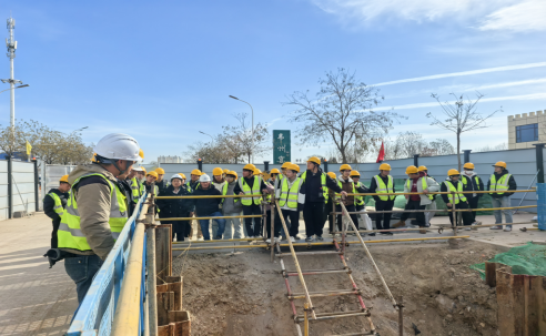 在兴庆区城市排水防涝设施改造项目-贺兰山路至大连路区域雨污分流工程七标段项目现场,项目经理结合施工实际,详细讲解基坑开挖、边坡支护、土方回填等核心工艺要点,同学们实地观摩施工设备操作、协同作业流程及质量检测环节,近距离感受工程一线标准化作业规范, 巩固专业知识、拓宽行业视野。