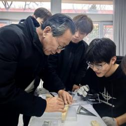 在实践教学环节,师生们一同拿起工具,全身心投入到传统榫卯窗棂构件的制作中,刨花纷飞间尽显匠心传承,刻刀游走中凝聚智慧力量,一件件初具雏形的榫卯构件,让学生切身感受到中华优秀传统文化博大精深。