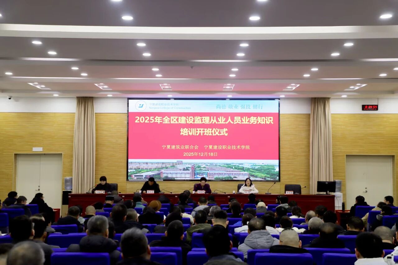 12月18日,由宁夏建筑业联合会与宁夏建设职业技术学院联合主办的2025年全区建设工程监理从业人员业务知识培训班在我校正式开班。宁夏建筑业联合会党支部书记邹爱萍、学校副校长周慧出席开班仪式。
