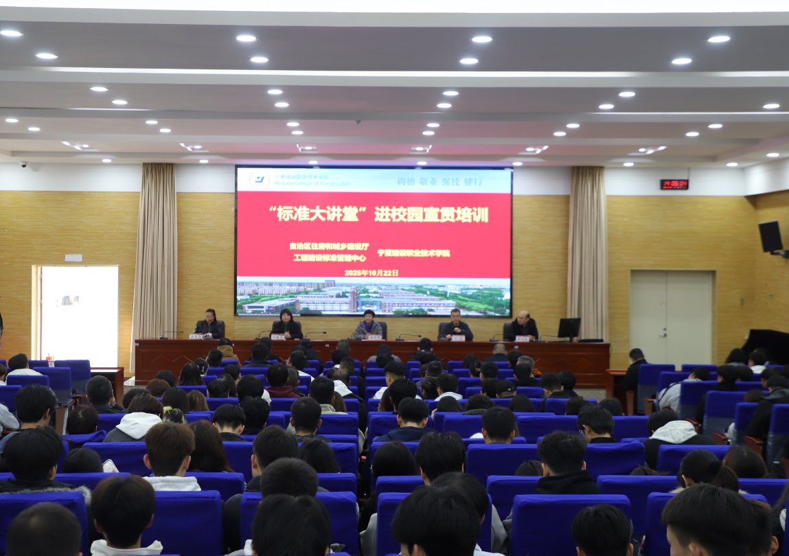 为充分发挥标准服务高质量发展作用,拓展地方标准宣贯覆盖面,提升专业技术人才对标准规范的应用水平,10月22日,我校与自治区住房和城乡建设厅联合开展“标准大讲堂”进校园宣贯培训。自治区住房和城乡建设厅工程建设标准管理中心副主任谢翌鹤、学校专业教师代表、学生代表及行业企业代表参加培训。