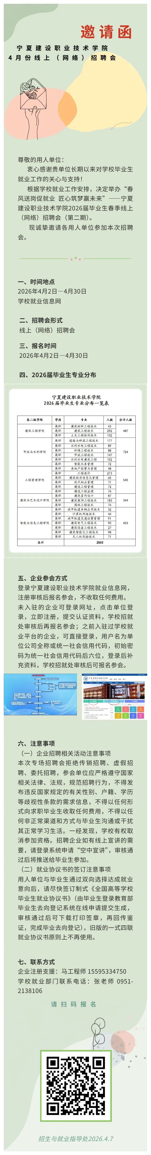 宁夏建设职业技术学院4月份线上(网络)招聘会邀请函