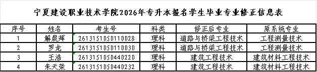 宁夏建设职业技术学院关于2026年专升本报名学生毕业专业修正